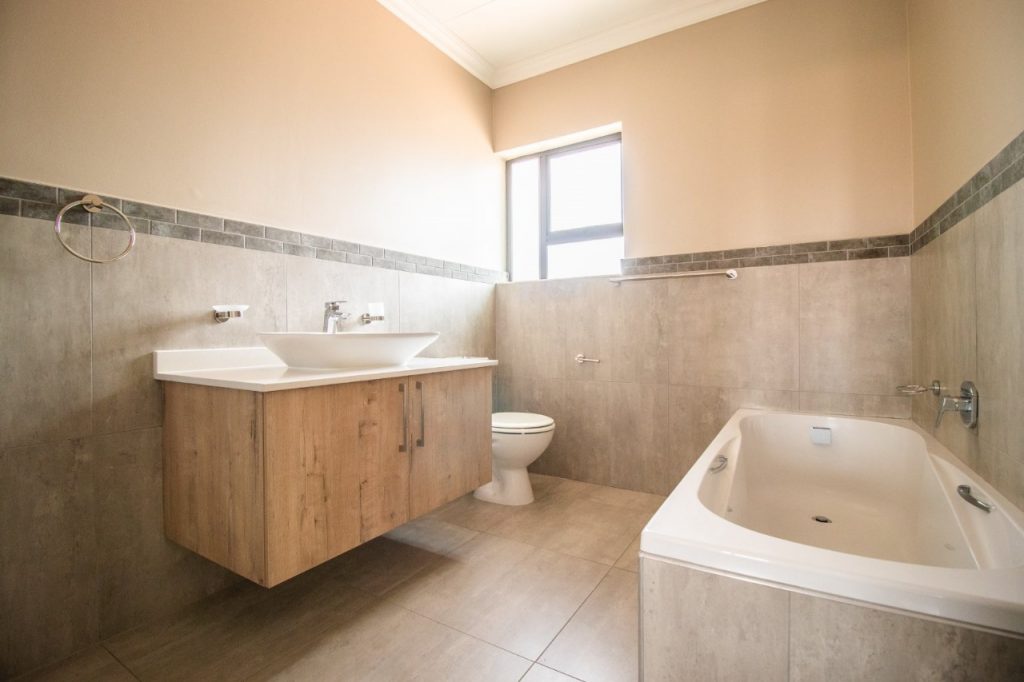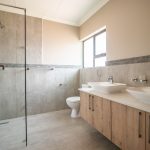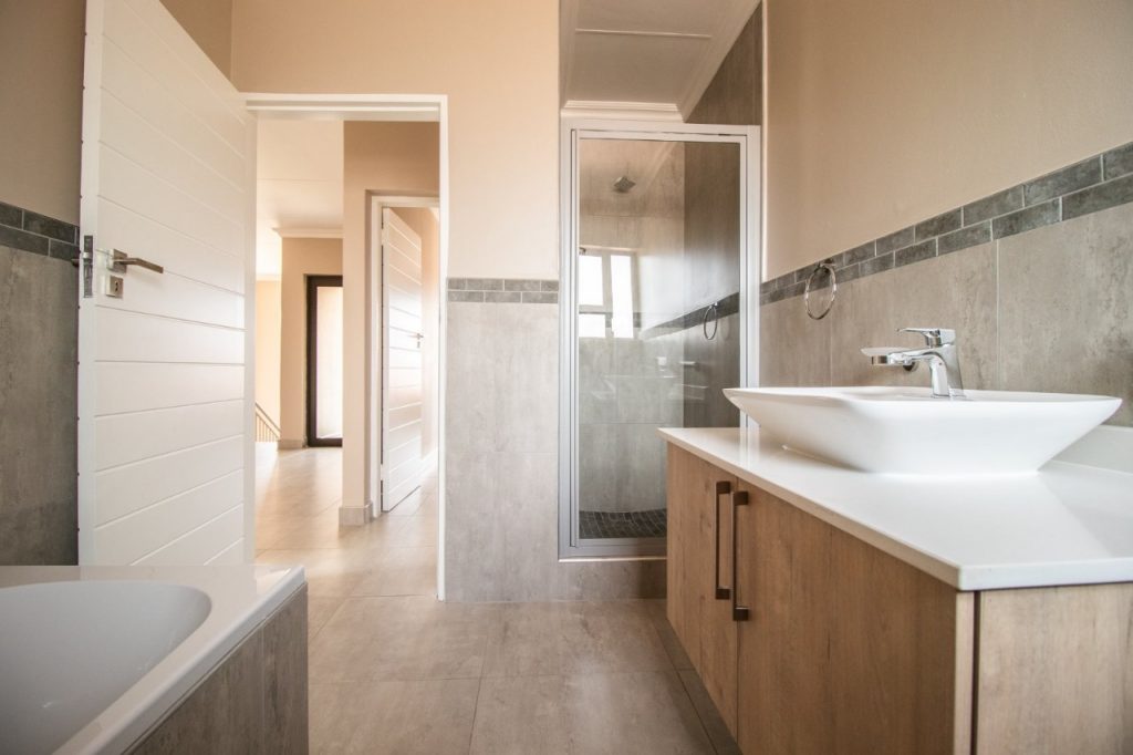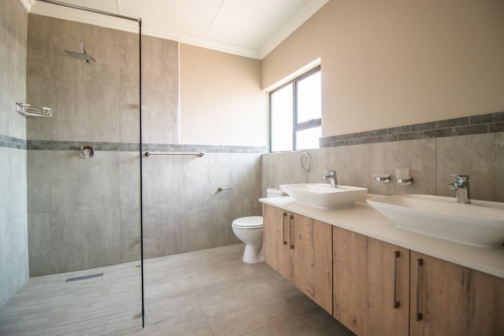 - Main en-suite with double vanity, toilet, and a spacious shower